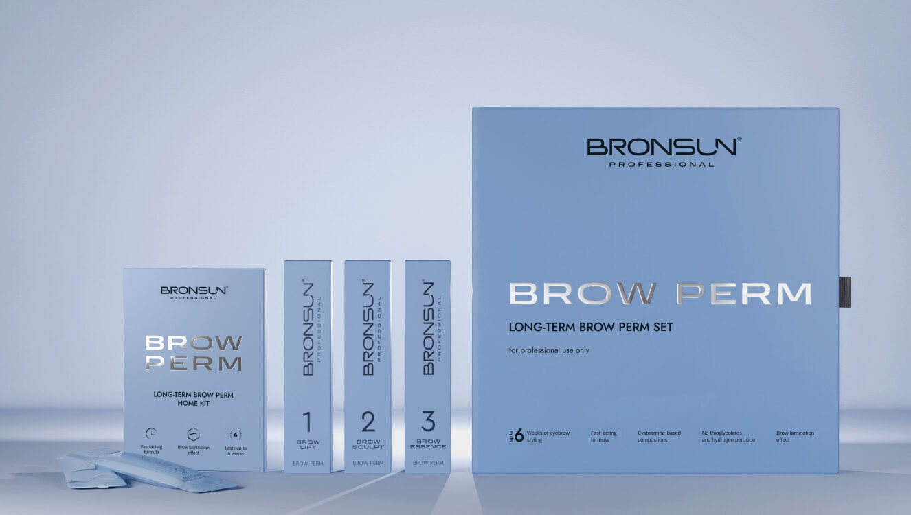 BROW PERM BRONSUN PROFESSIONAL product range: 3 simple steps toward results that last up to 6 weeks.