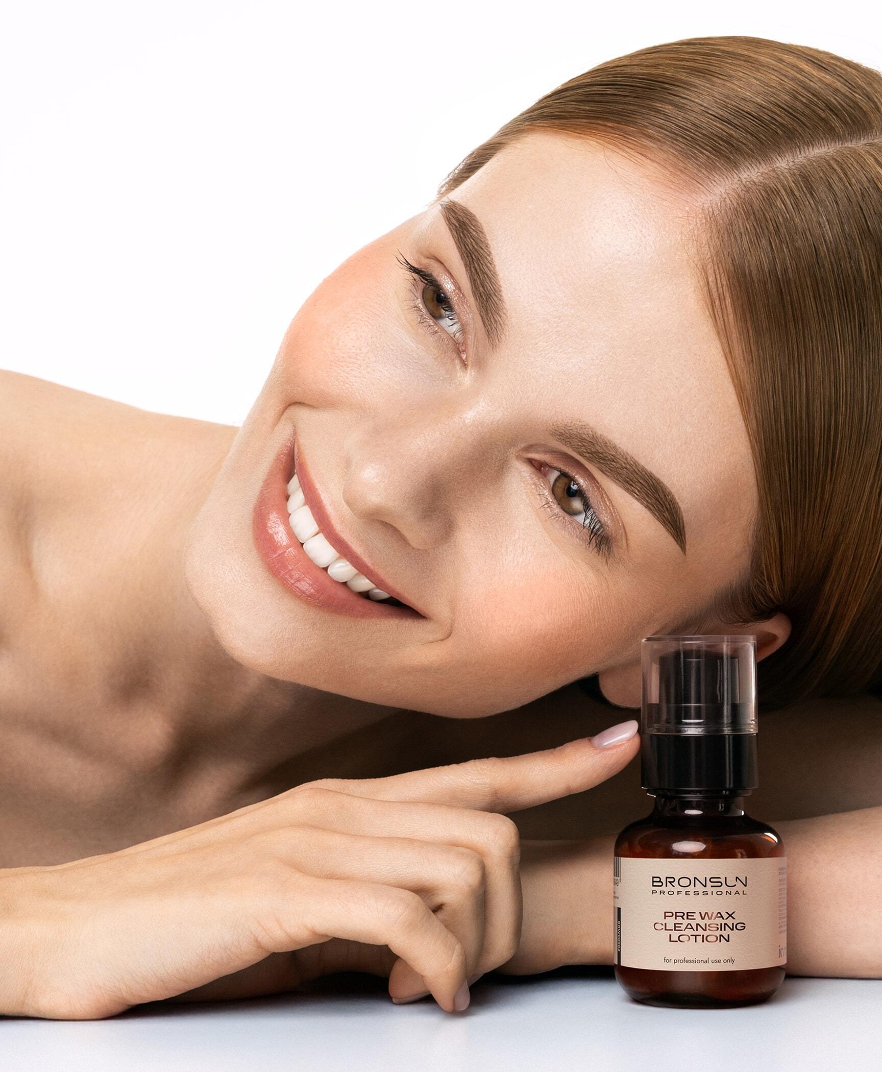 Used in the first stage of eyebrow waxing, prepares skin for the procedure. Effectively degreases, removes makeup and other impurities. Enhances wax adhesion for precise hair removal in a single application.
