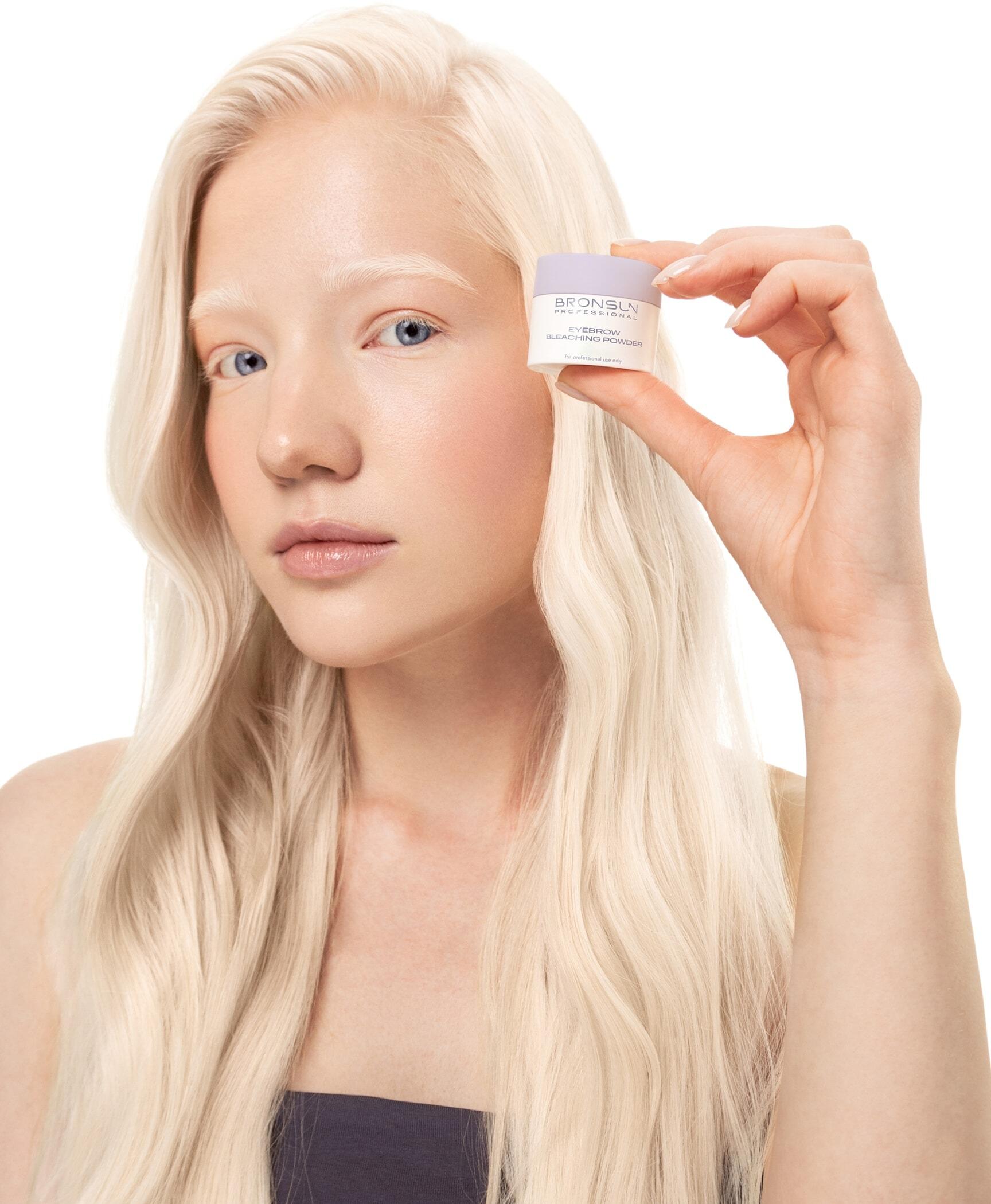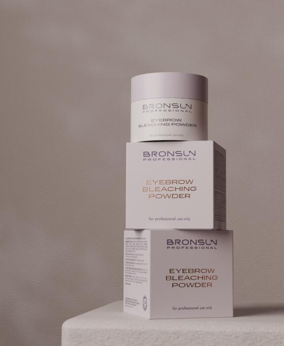 03In a non-metallic cup, thoroughly mix Eyebrow bleaching powder BRONSUN and Cream developer 3% BRONSUN in a strict ratio of 1:1 until homogeneous creamy consistency. Leave the mixture for 30–120 seconds until all components fully interact.