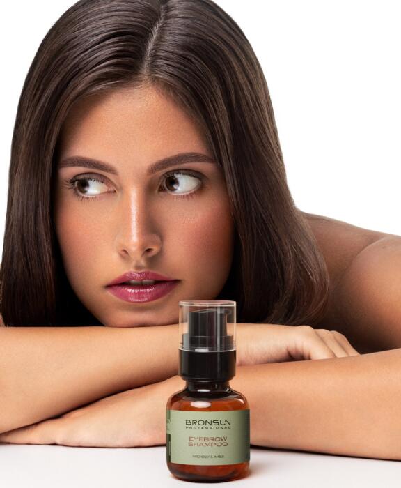 01Apply a small amount of the shampoo to the wet eyebrows.