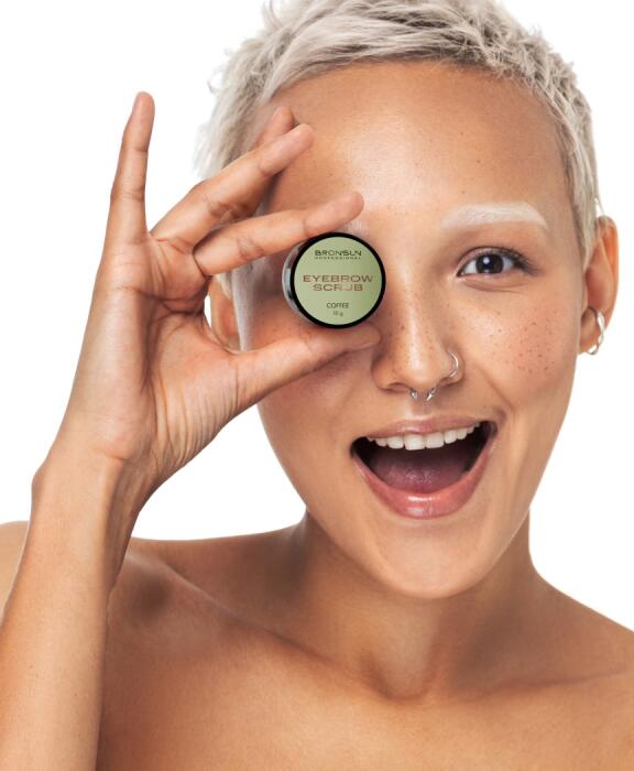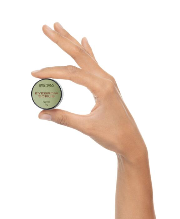 BRONSUN scrub is formulated for the delicate eyebrow area: ultra-fine coffee particles gently remove dead skin cells without irritating even the most delicate skin.