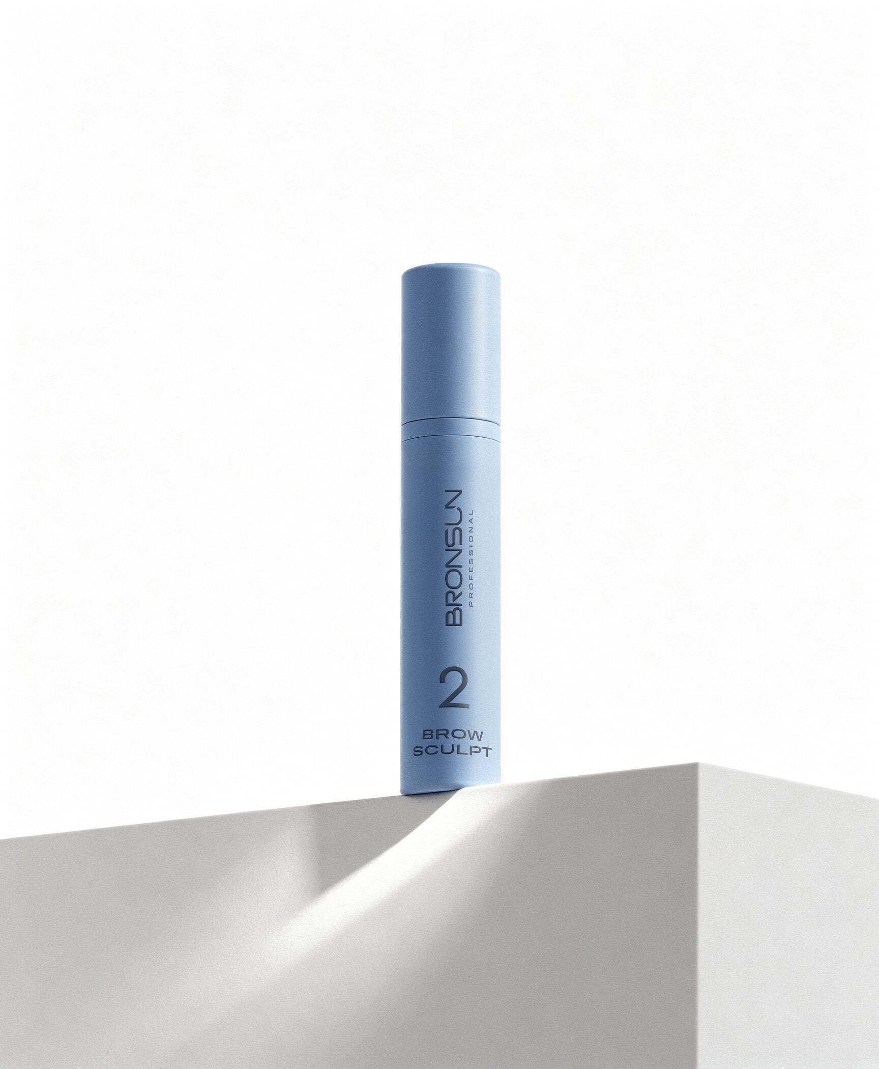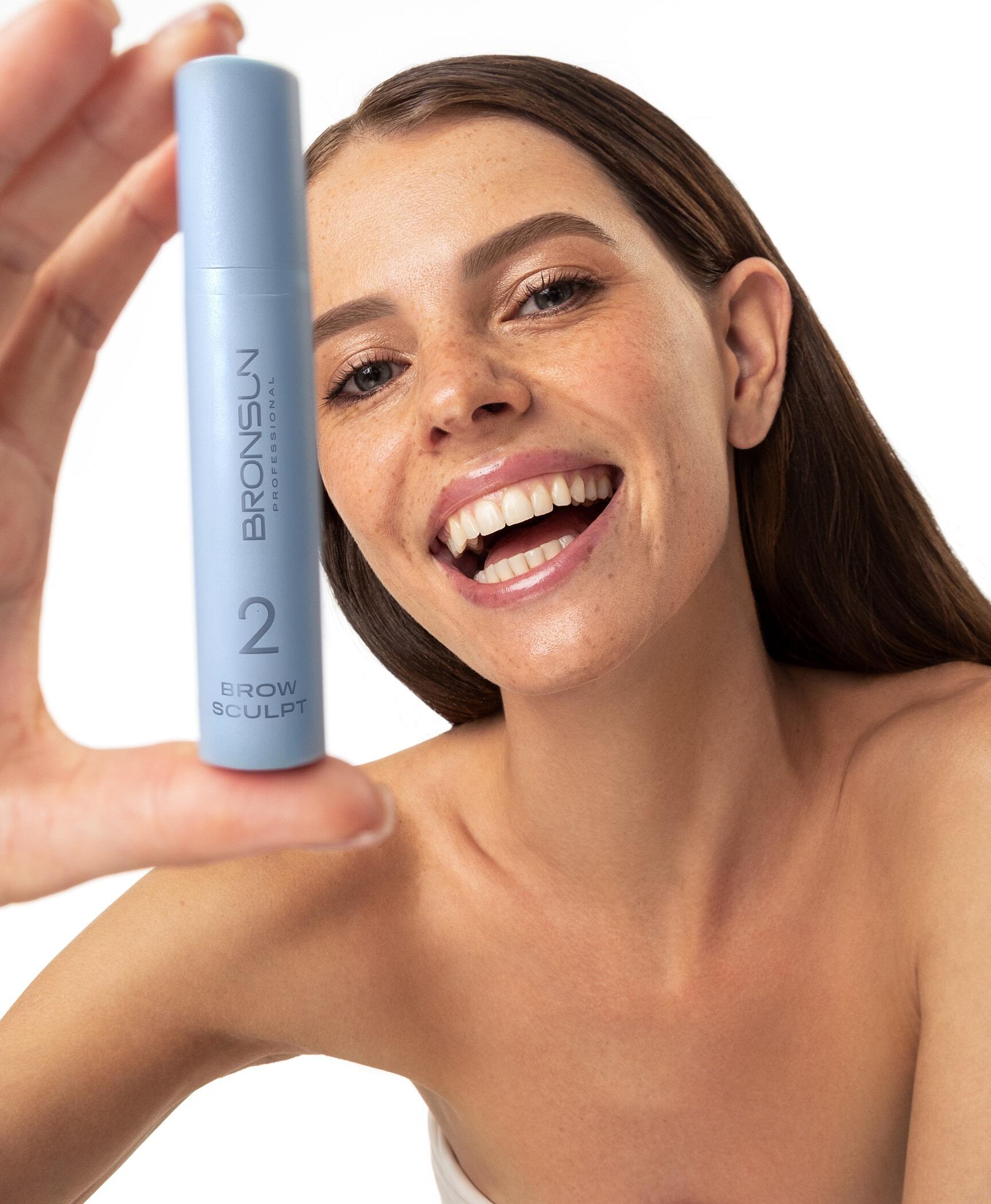 07Apply Composition #2 BROW SCULPT BRONSUN to the eyebrows, spread along the hairs, carefully creating the desired direction. The exposure time for Composition #2 is the same as for Composition #1.